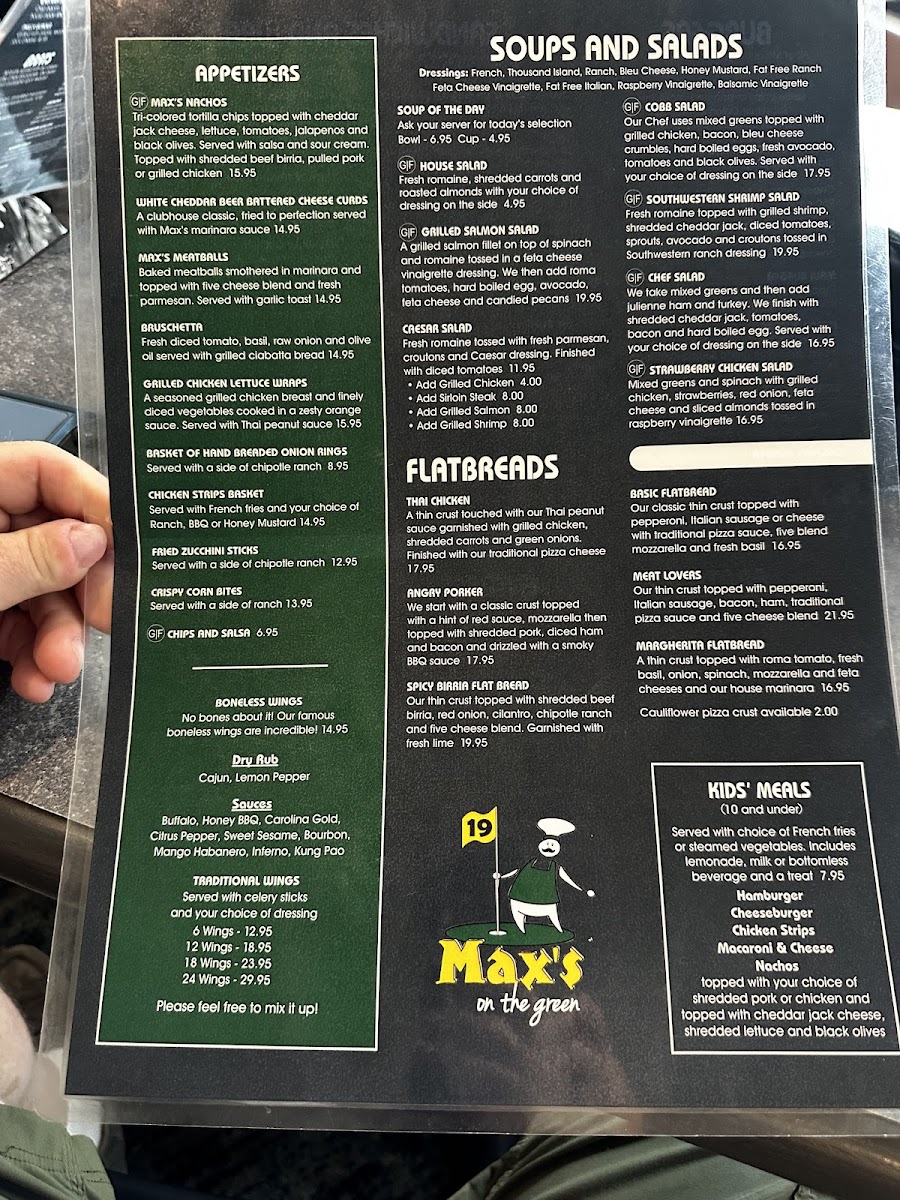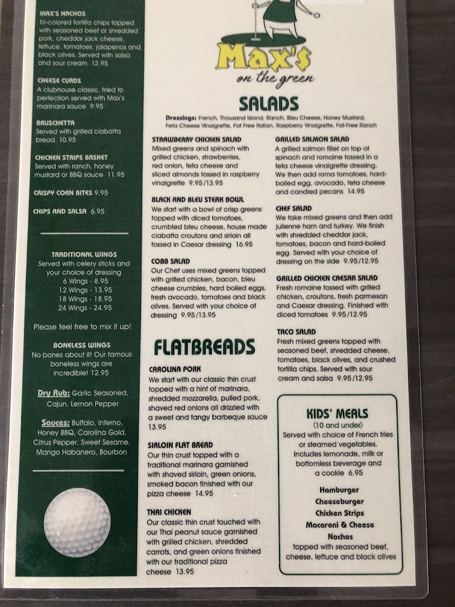 Introducing "Max's on the Green," a delightful dining destination in Spicer, Minnesota, that perfectly combines a vibrant atmosphere with a diverse menu. Nestled within the scenic backdrop of a golf course, the restaurant offers a variety of options, from hearty soups and fresh salads to tantalizing flatbreads and burgers. Highlighting the culinary creativity, their flatbreads like the Thai Chicken and Spicy Birria bring a fusion of flavors that excite the palate. Patrons rave about the signature poutine—especially enhanced by steak—as a must-try dish. Guests also appreciate Max's laid-back vibe, coupled with live music, making it a social hub for friends and families alike. Though some diners suggest room for aesthetic improvement, the rich flavors and quality of the meals shine through. Overall, Max's on the Green promises a delightful culinary experience, inviting visitors to savor both food and the picturesque surroundings.